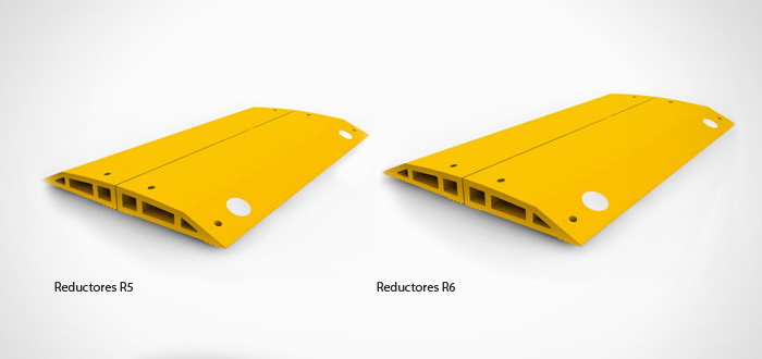 Reductor de velocidad para calles, accesos a avenidas, calles interiores de shoppings y supermercados. Recomendado fundamentalmente por el tipo y calidad de material y la larga duración del mismo. Sus medidas son de 390 mm de largo por 200 mm de ancho y 50 mm de alto. Logra reducir la velocidad a unos 30 ó 40 Km/h.
